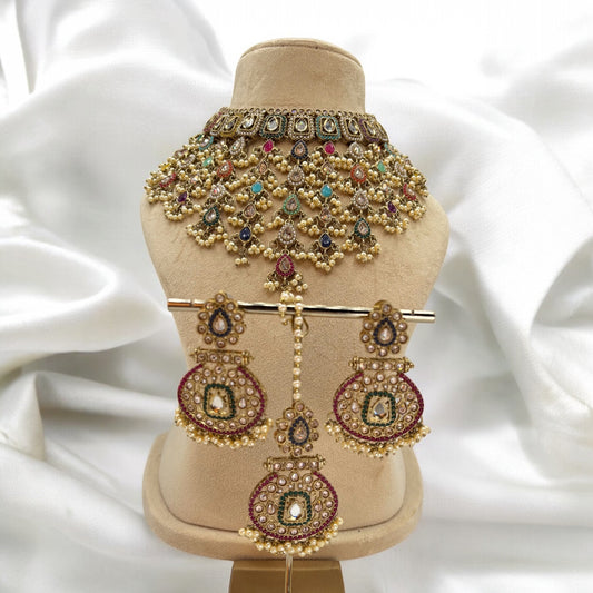 Elegant full necklace set with earrings and mang tikka.