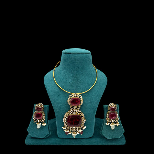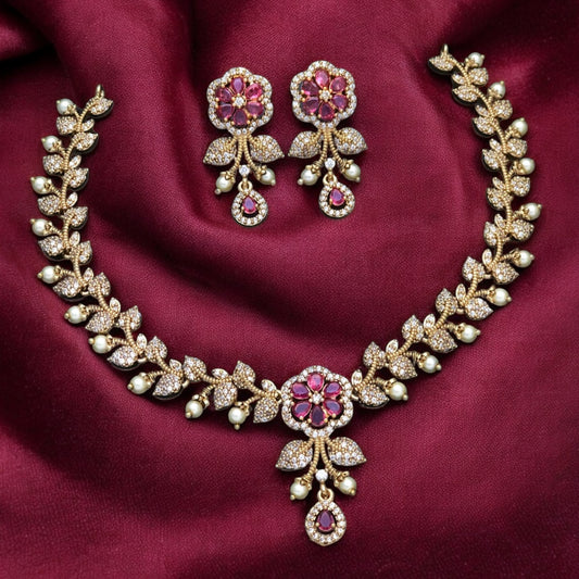 Very elegant rose gold plated pink choker set with kundan and pink stones.
