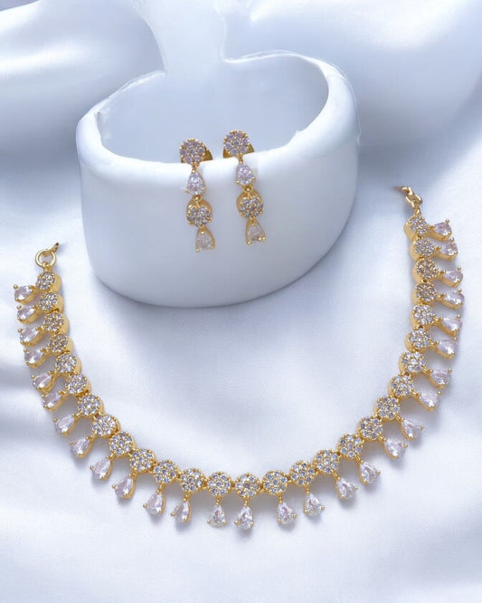 Gold plated American Diamond Necklace Set in matte finish