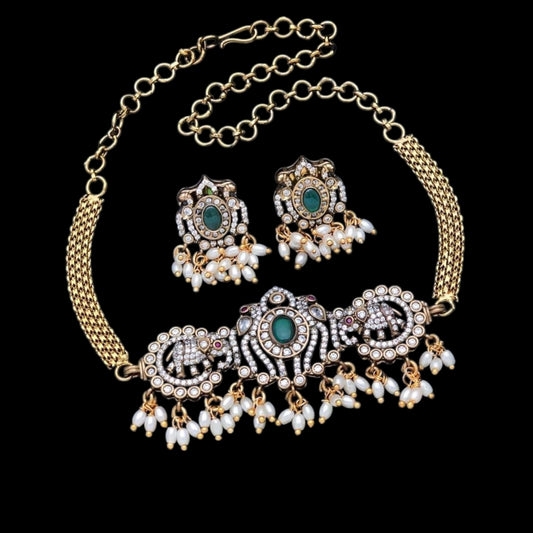 American Diamond choker set with Victoria Polish