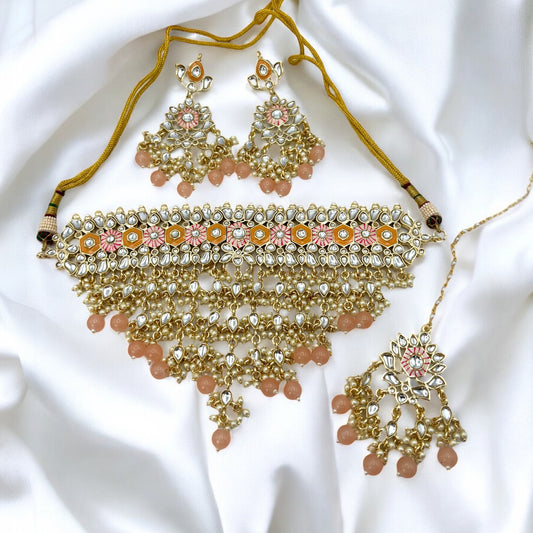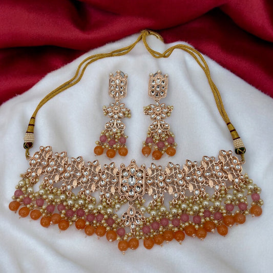 Rose gold pink and peach choker/necklace set