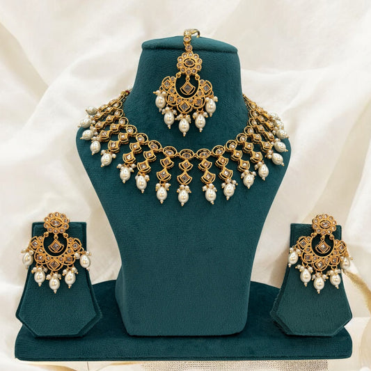 Premium quality pachi kundan necklace set