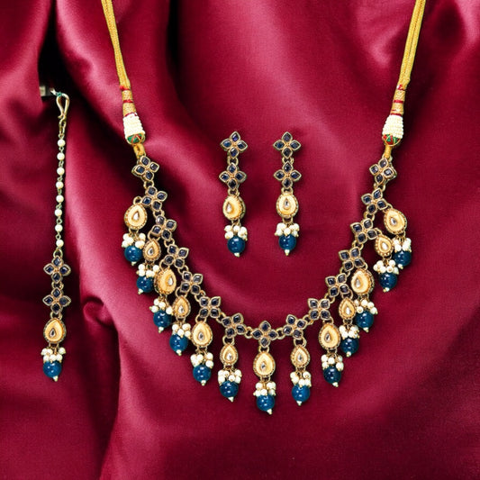 Beads necklace set with mang tikka