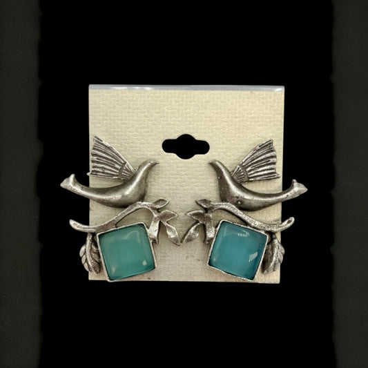 Silver oxidized turquoise color earrings