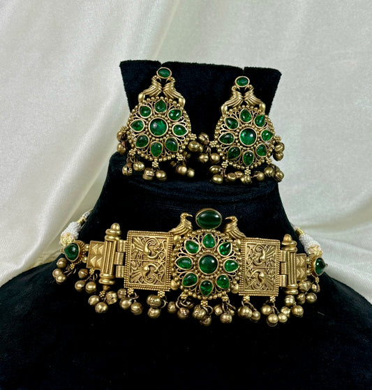 Premium kundan and italian stones choker set with studs.