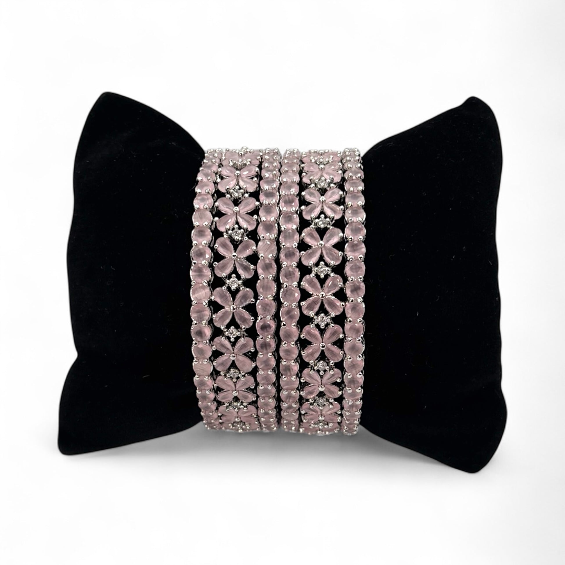 American Diamond pastel pink bangles set. Set of 6 bangles.