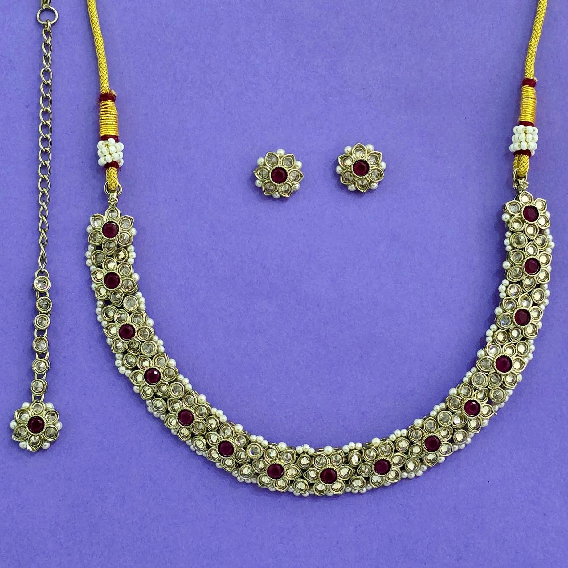 Mehndi polish Polki/ reverse AD necklace set with mang tikka.