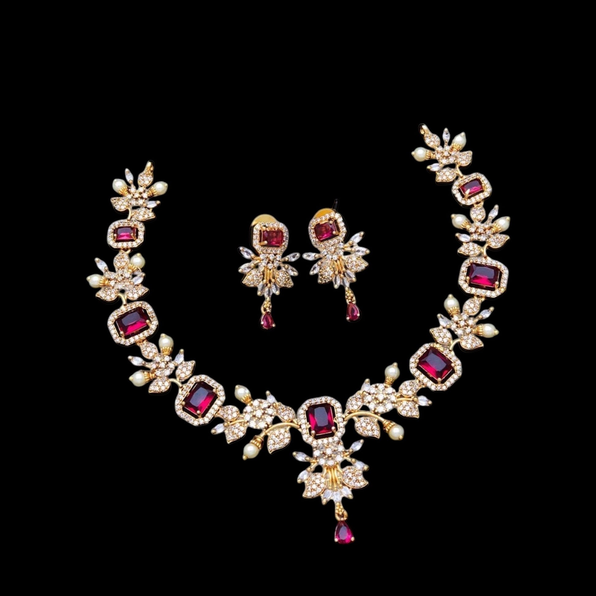 Gold plated American Diamond necklace set with earrings.