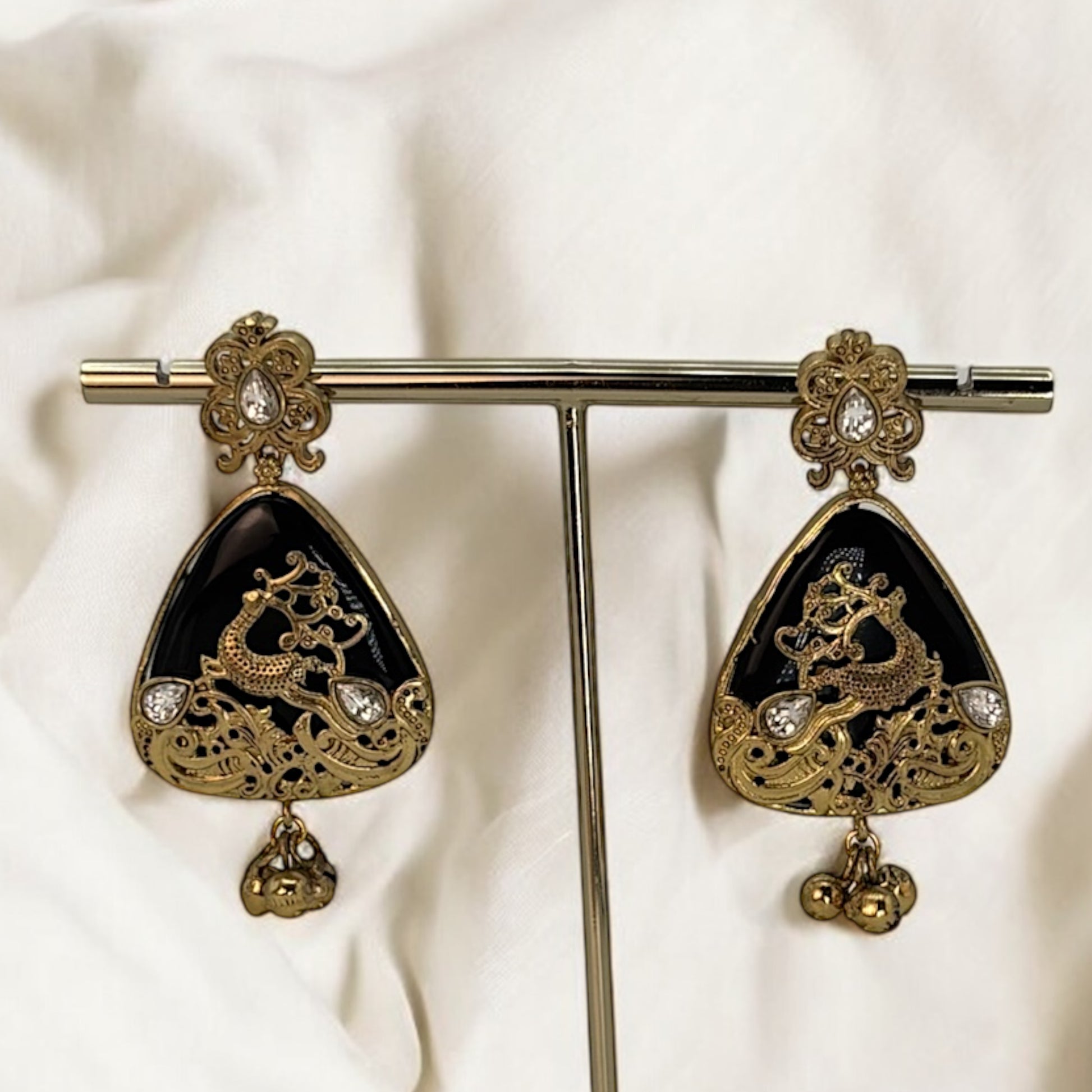 Matte gold finish designer black earrings.