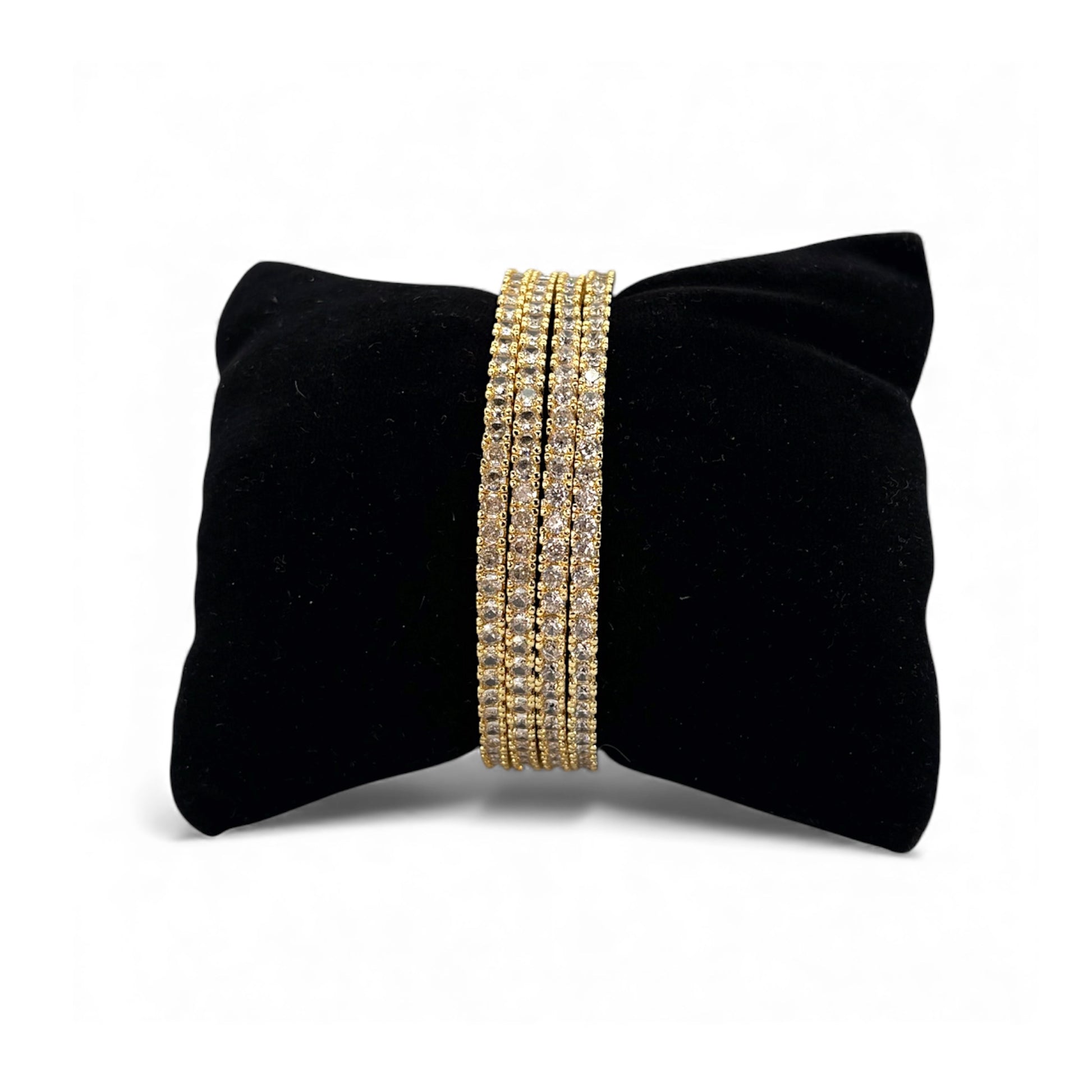 Gold plated single line American Diamond single line bangles. Set of 4.