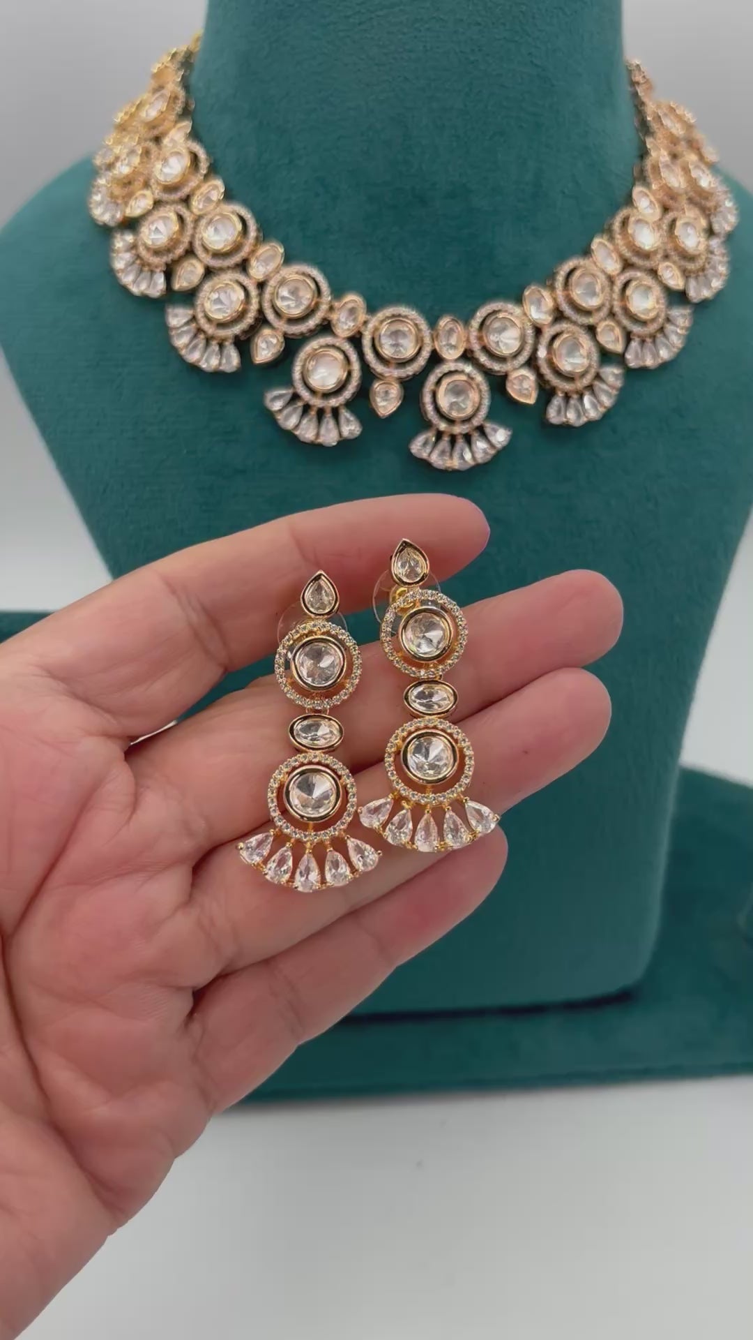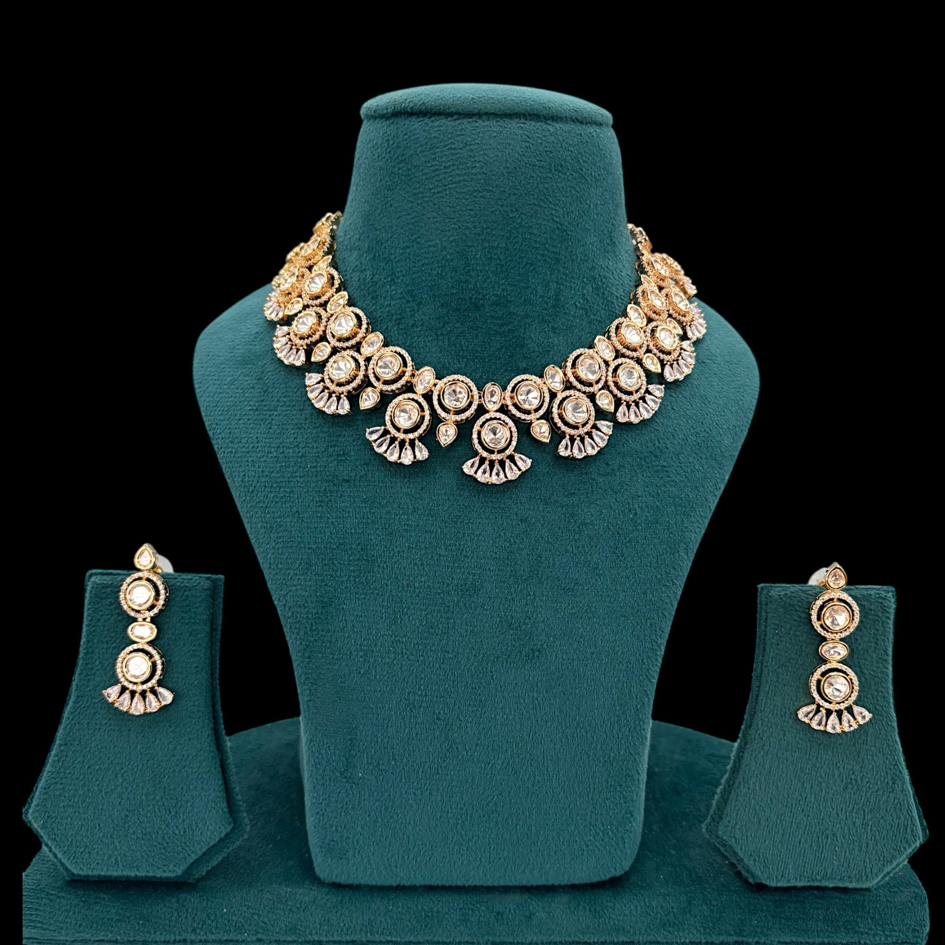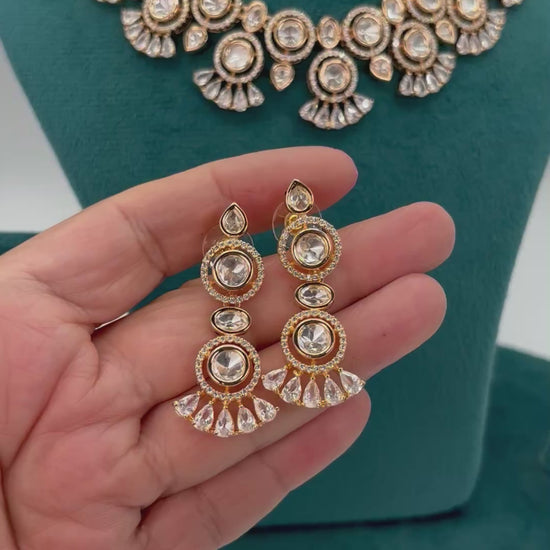 Premium quality gold plated beautifully designed kundan necklace set with Cz stones.
