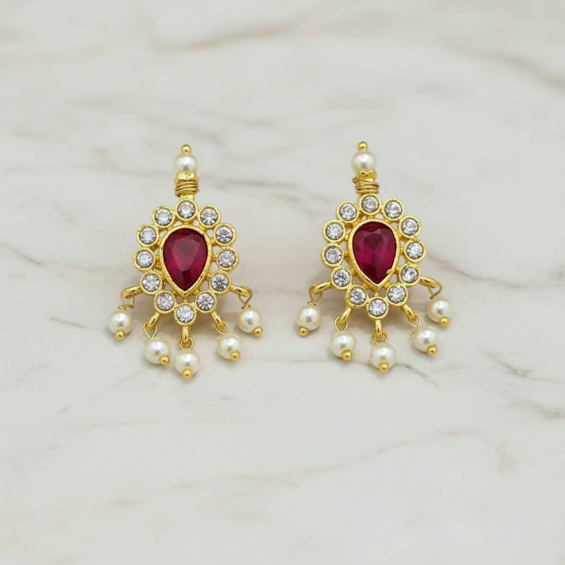 Gold plated American Diamond earrings with moti.
