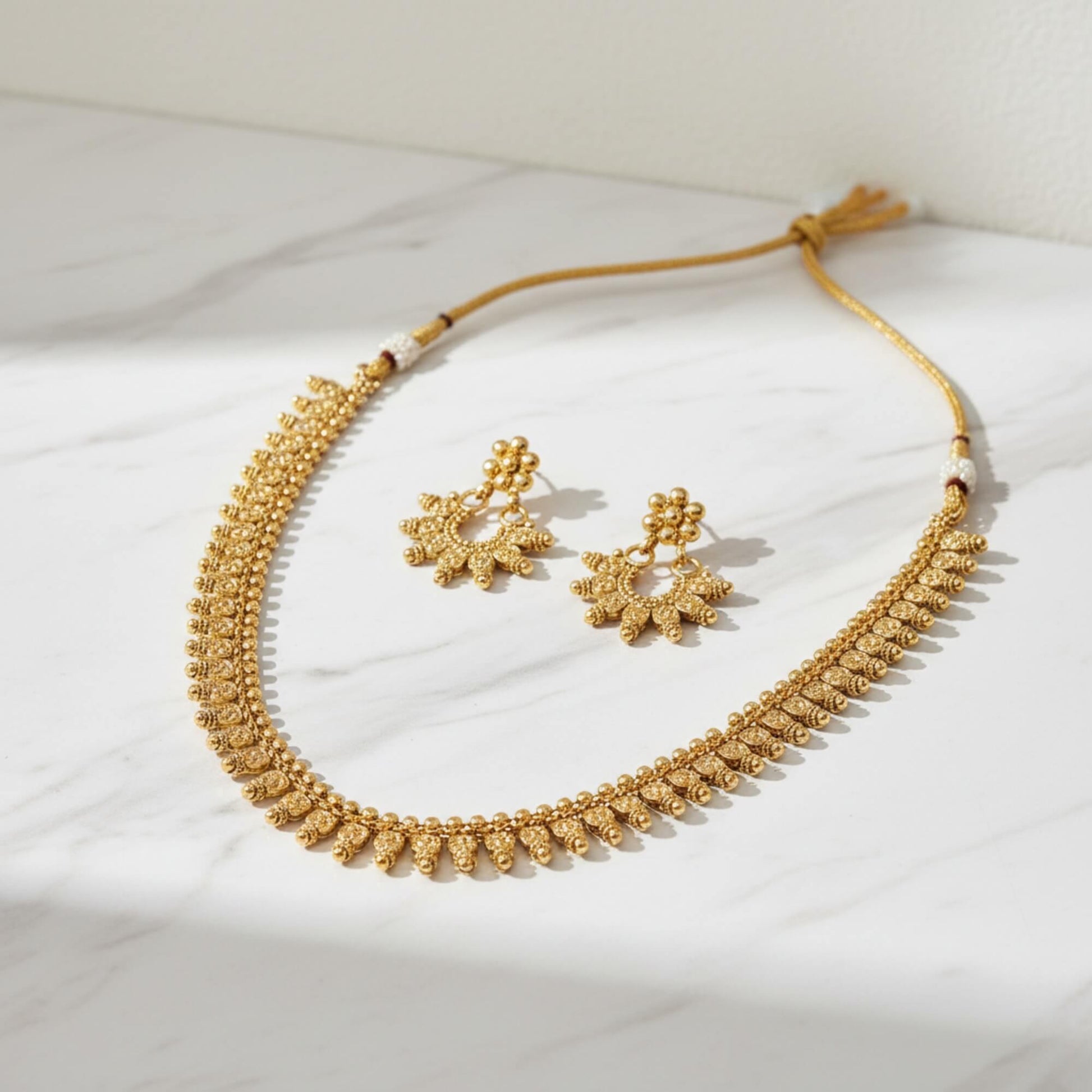 Gold plated beautifully carved traditional necklace set with chandbali.