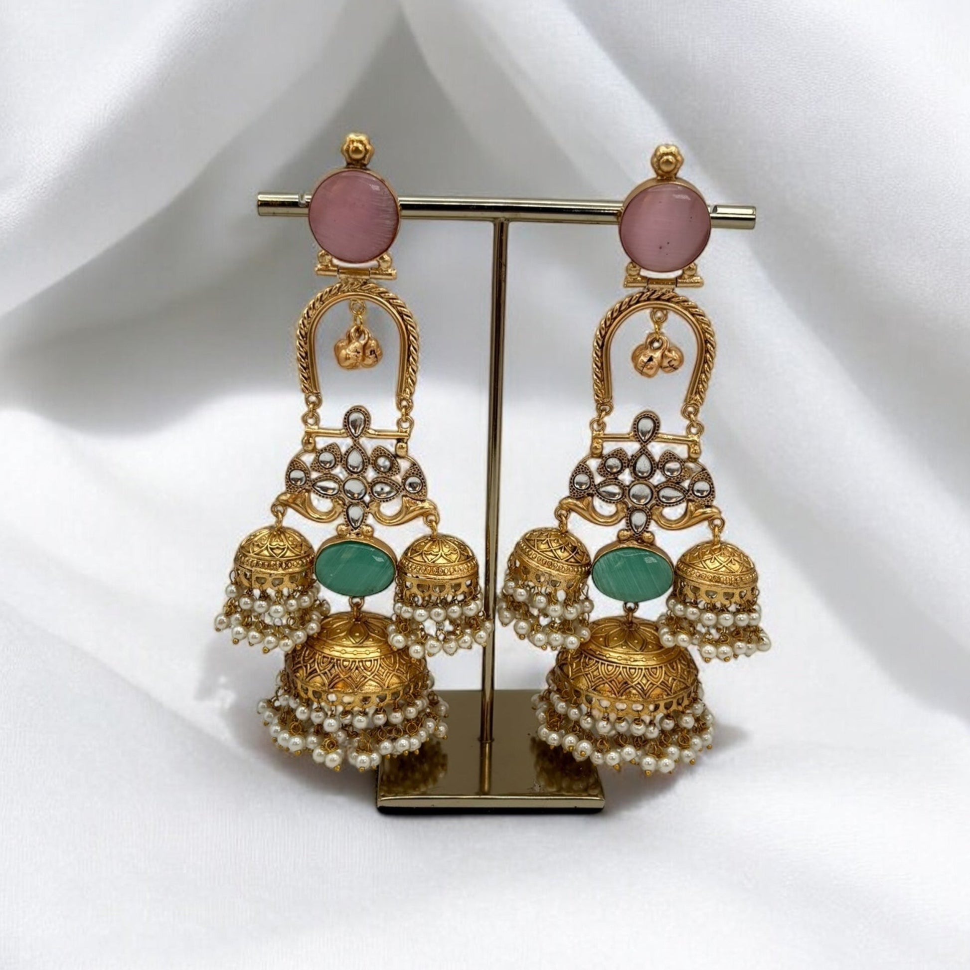 Light weight golden kundan jhumki earrings