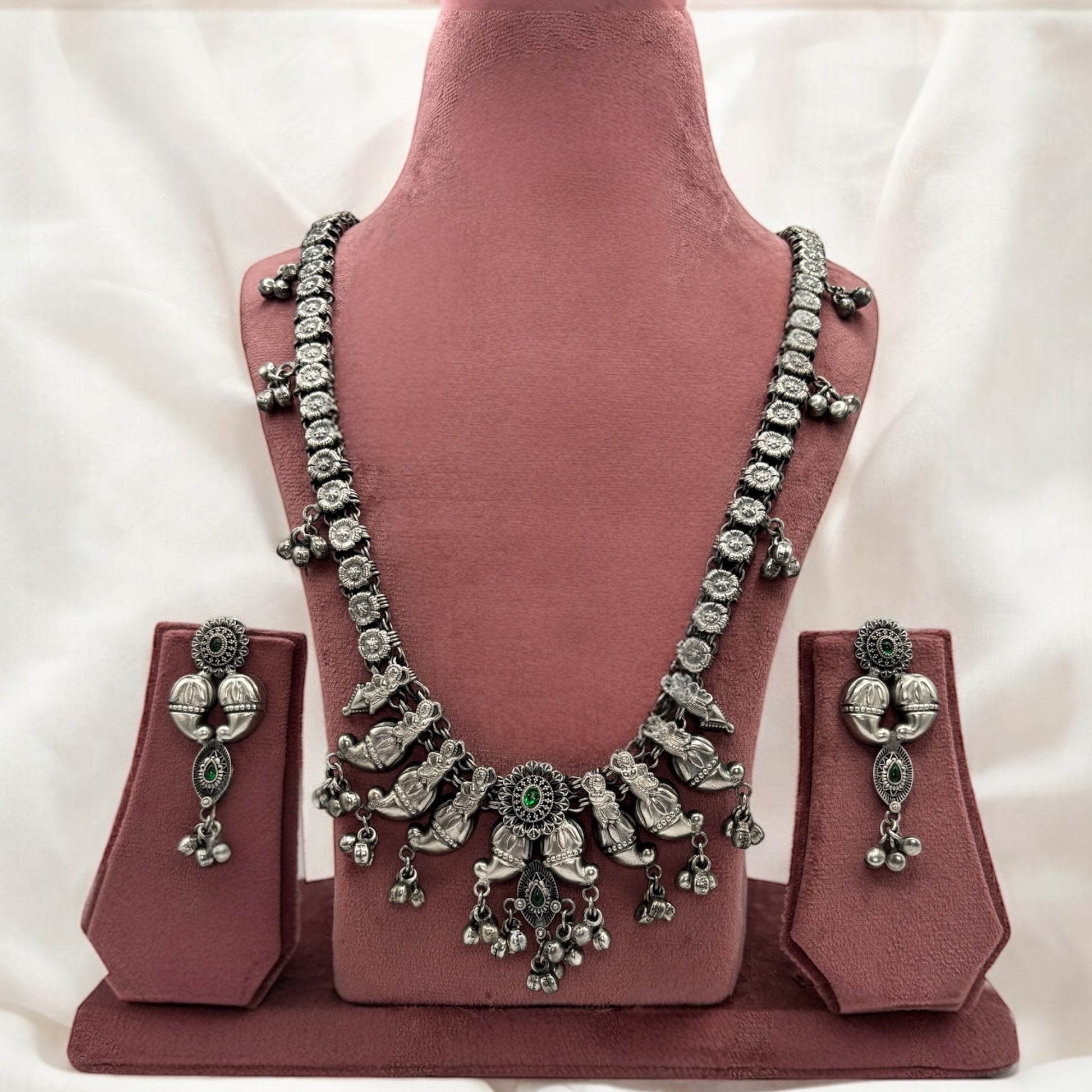 Oxidized German silver long necklace set with earrings.