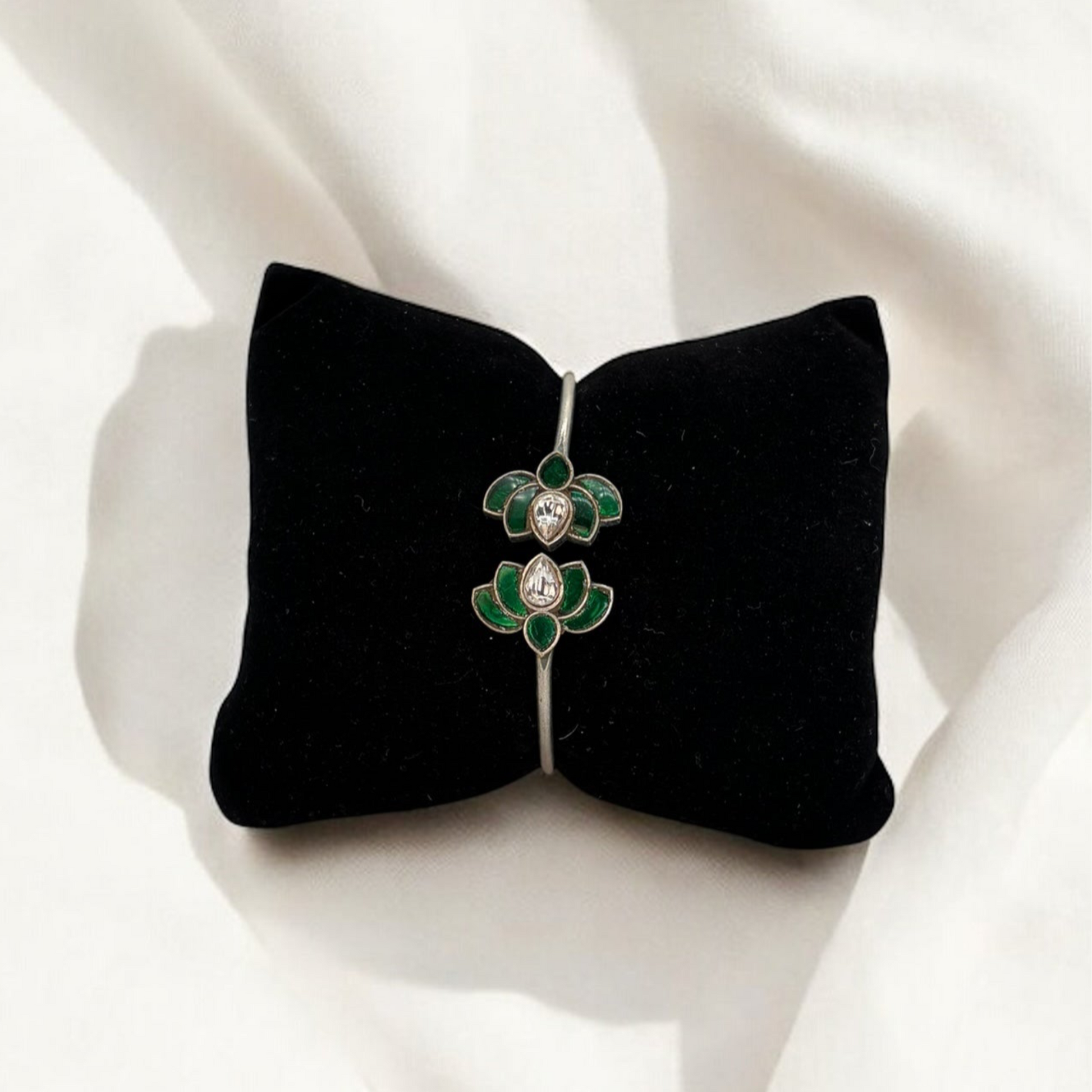 Oxidized German silver green pachi Kundan adjustable bracelet.