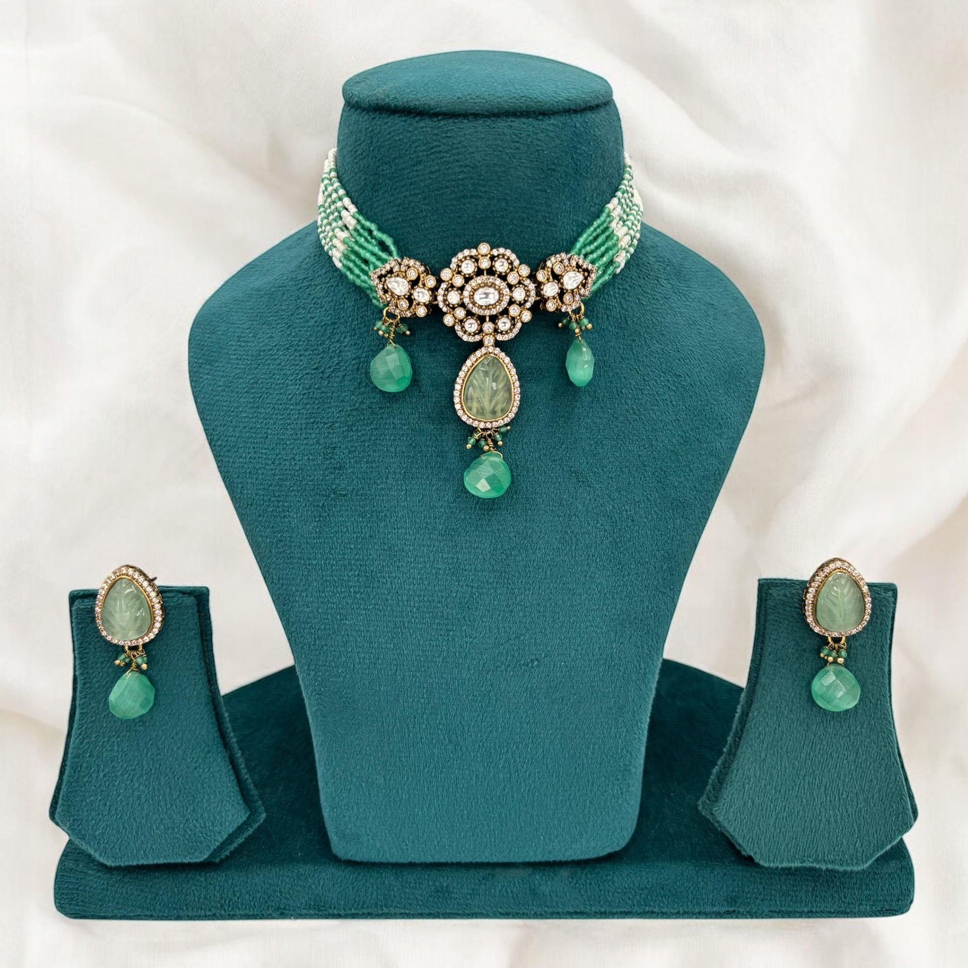 Pastel green moissanite choker set