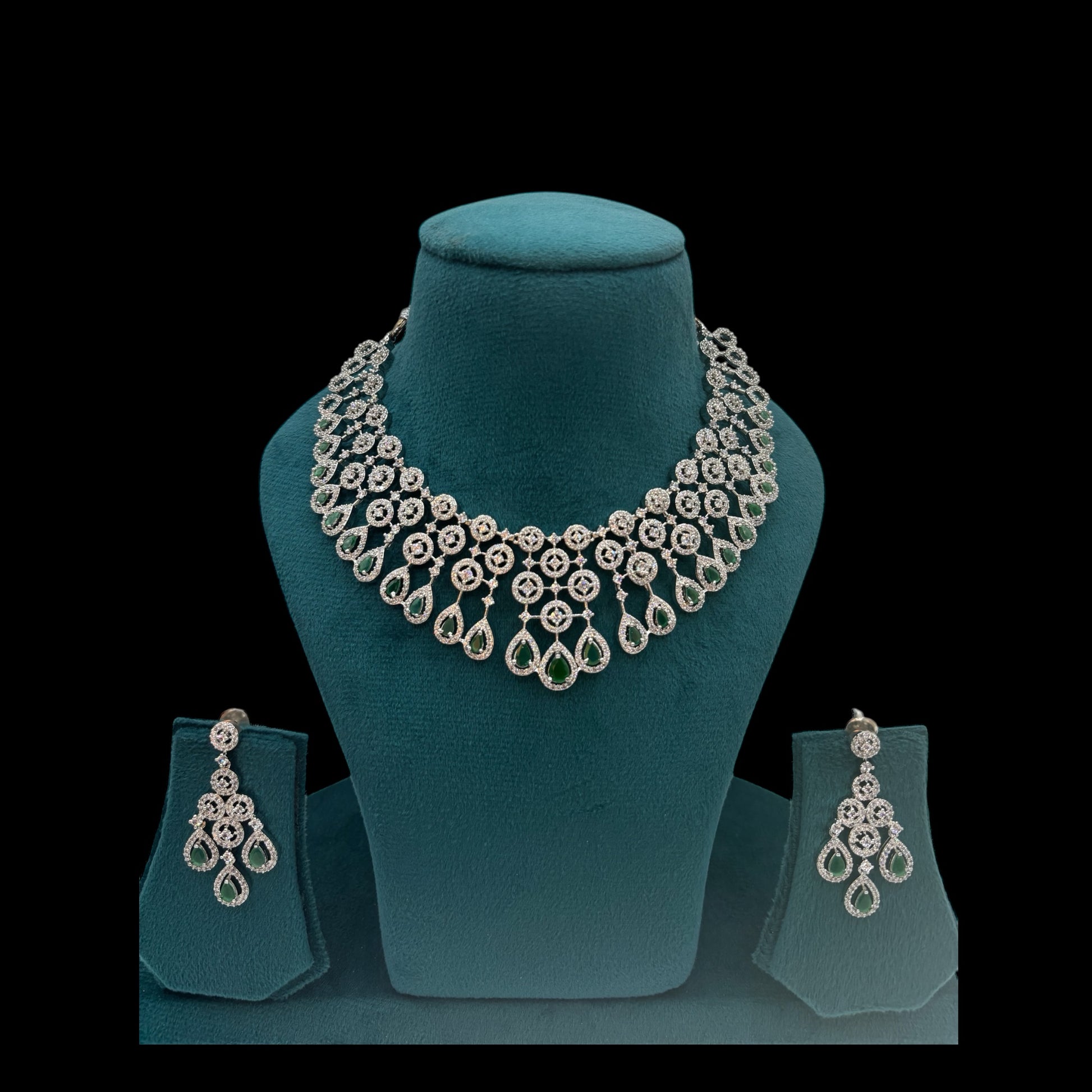 Silver plated emerald green American Diamond necklace set with earrings