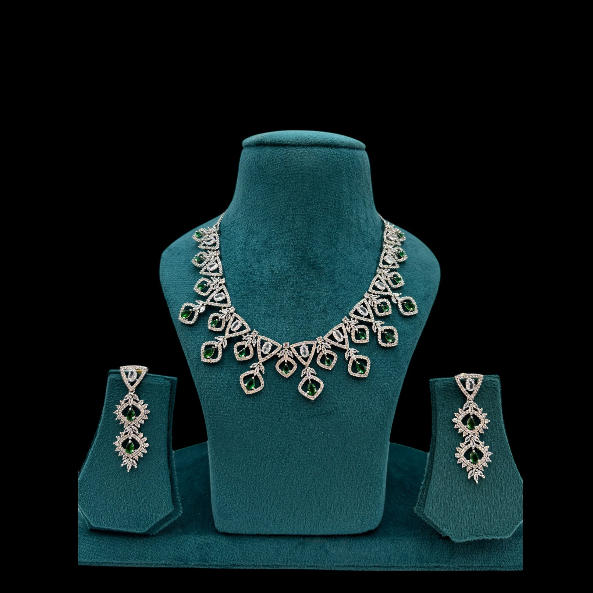 Emerald green American Diamond necklace set with earrings