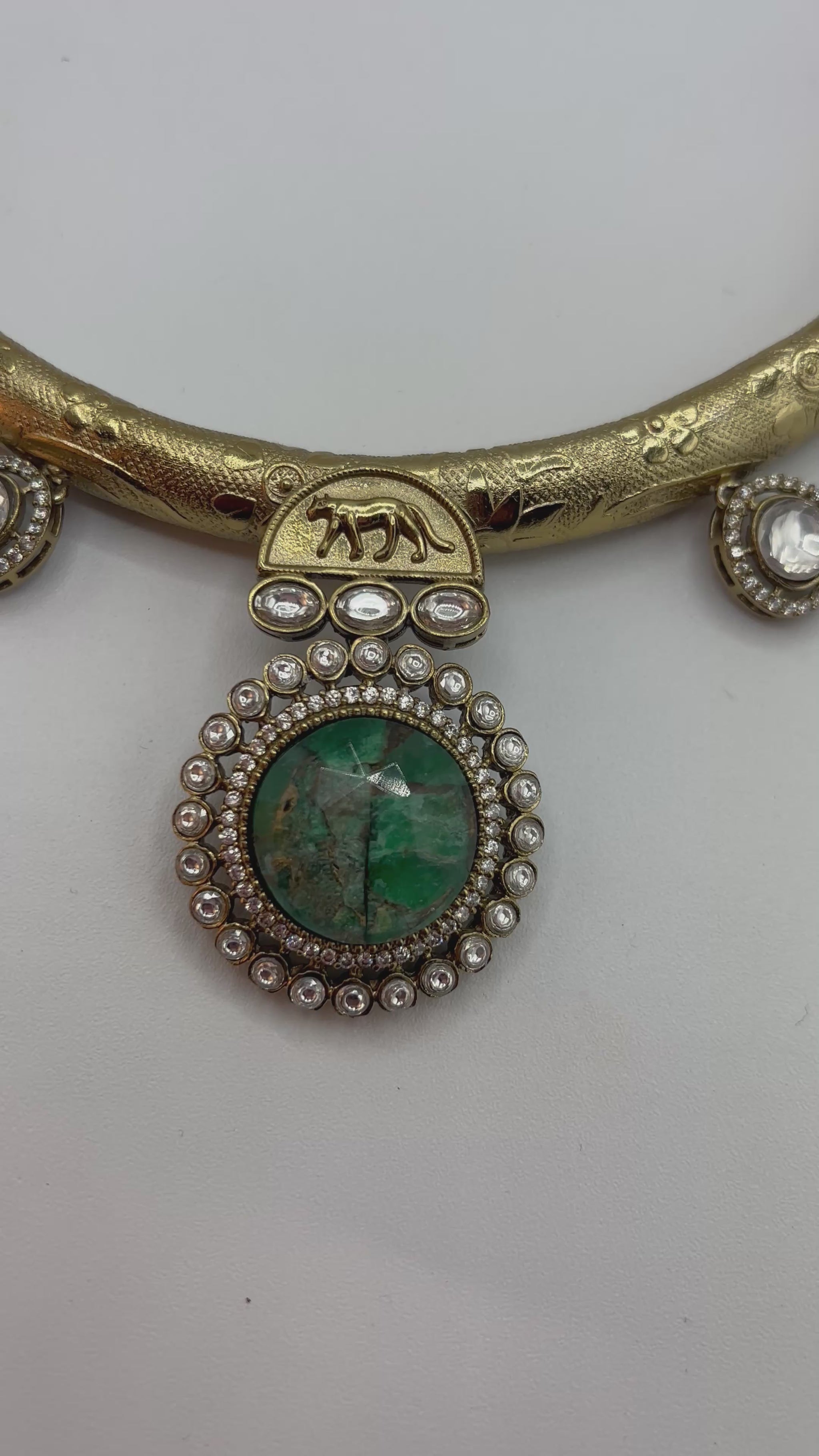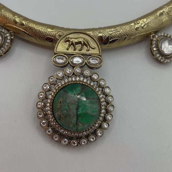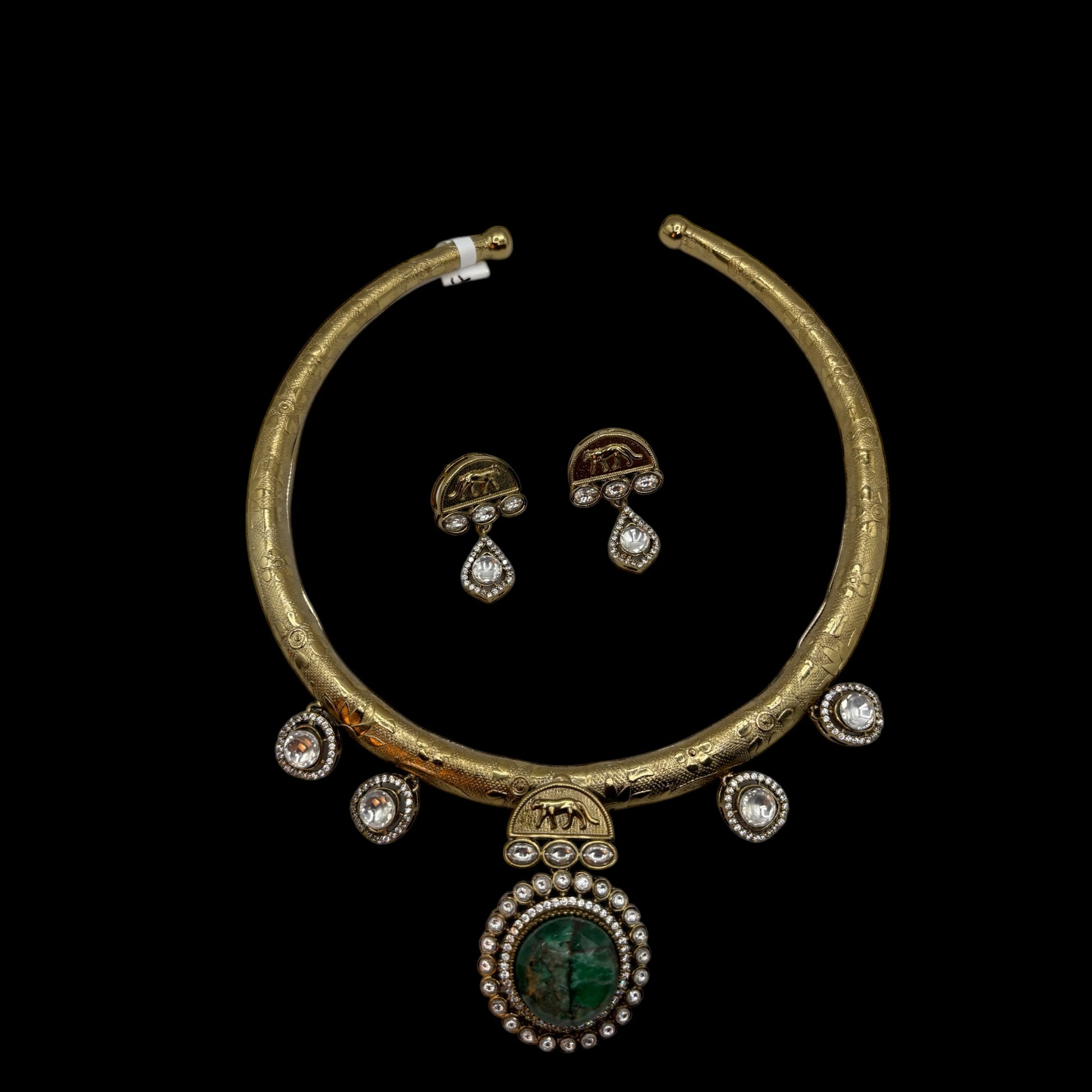 Sabyasachi inspired flower detailing hasli with high quality kundan, moissanite and natural stone