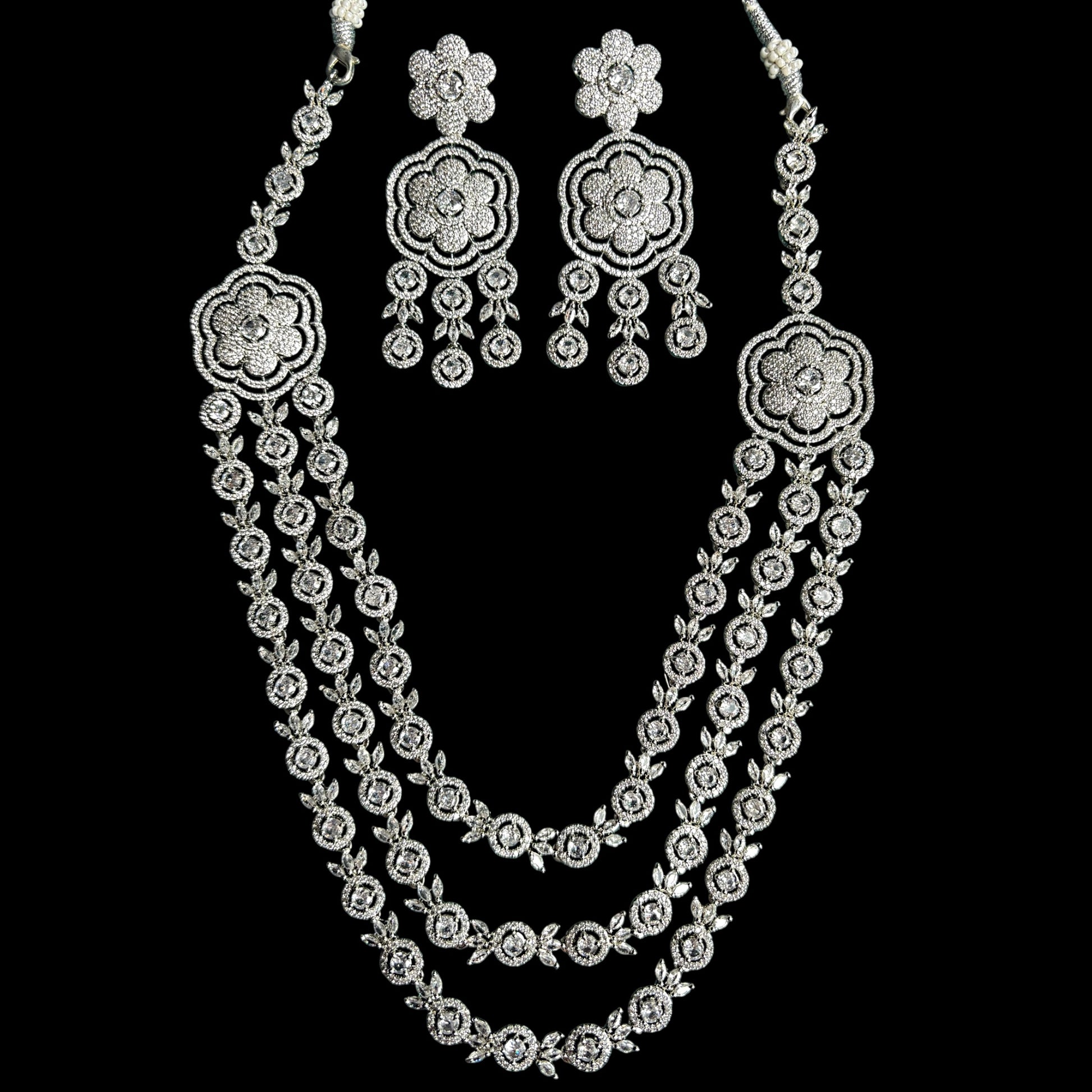 Three layers American Diamond long necklace set.