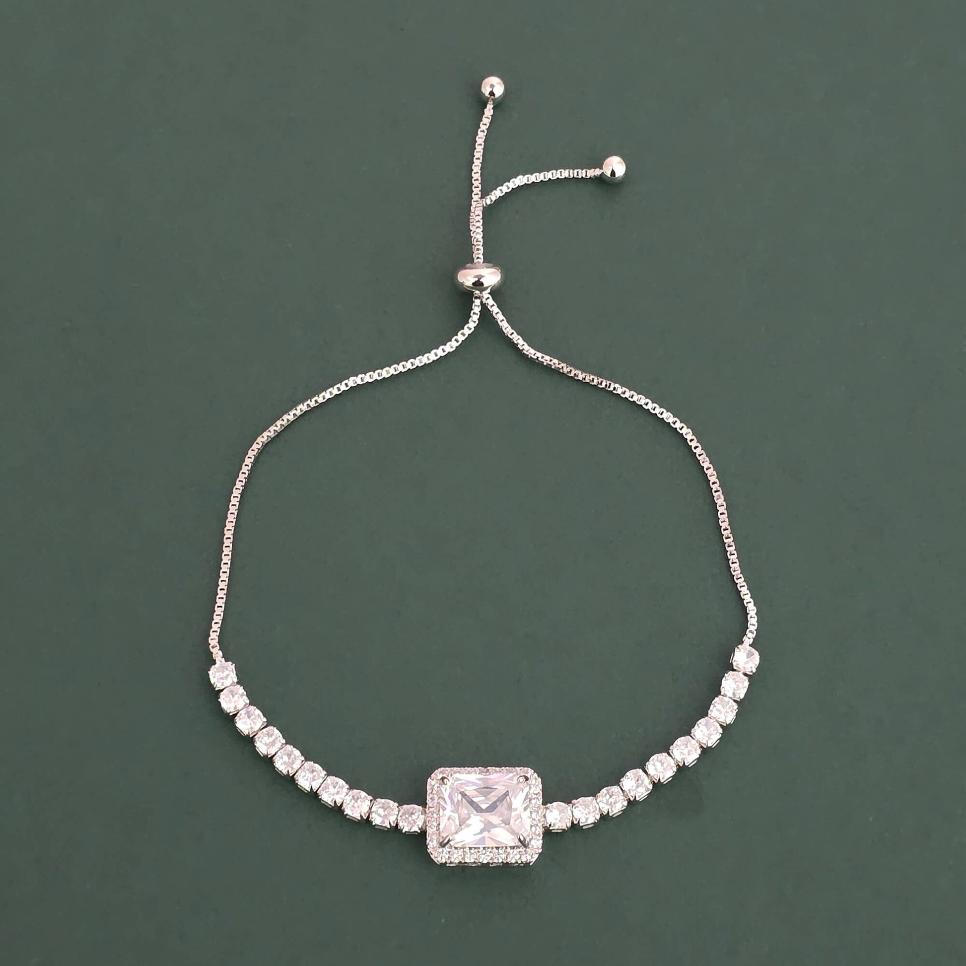 Silver plated white American Diamond adjustable bracelet.