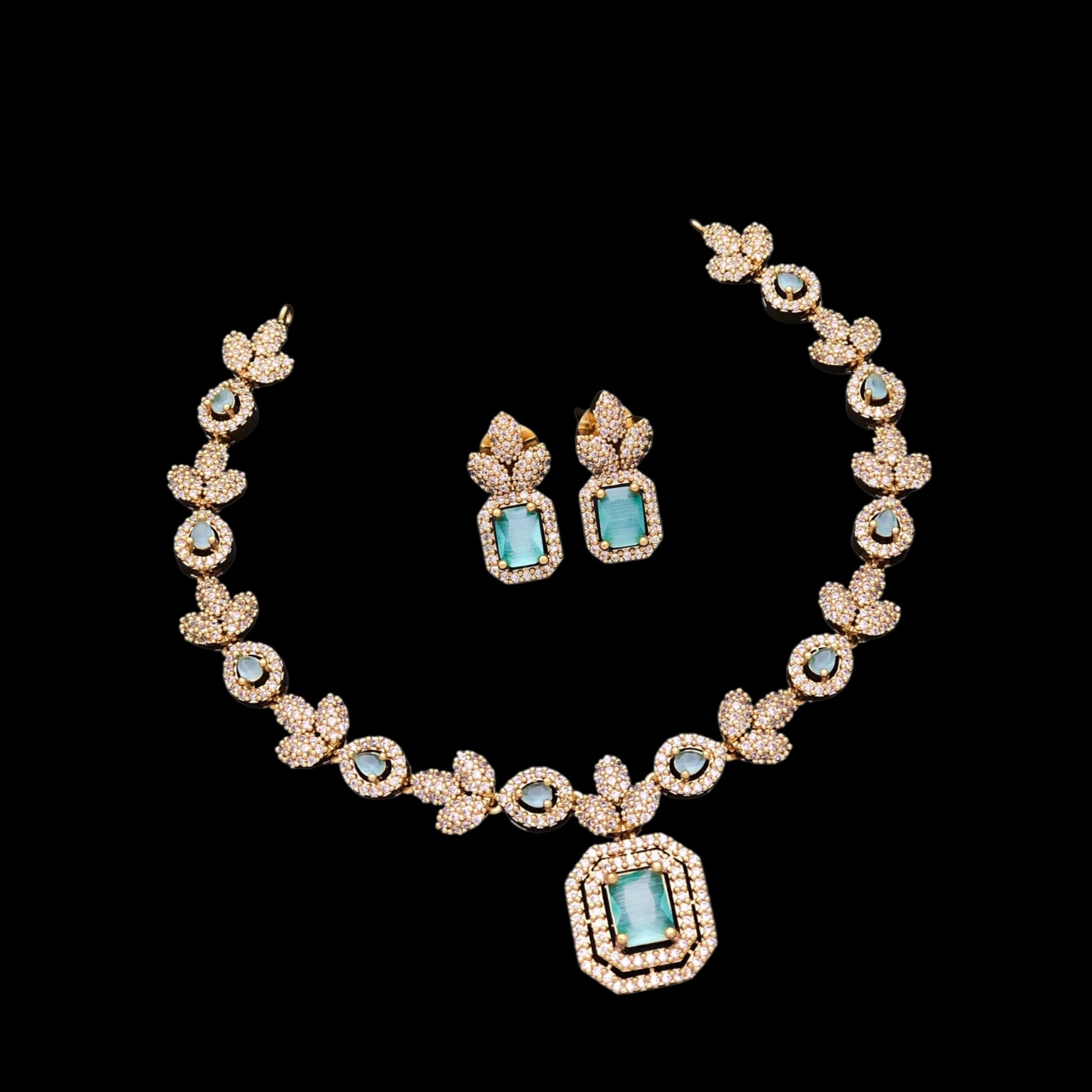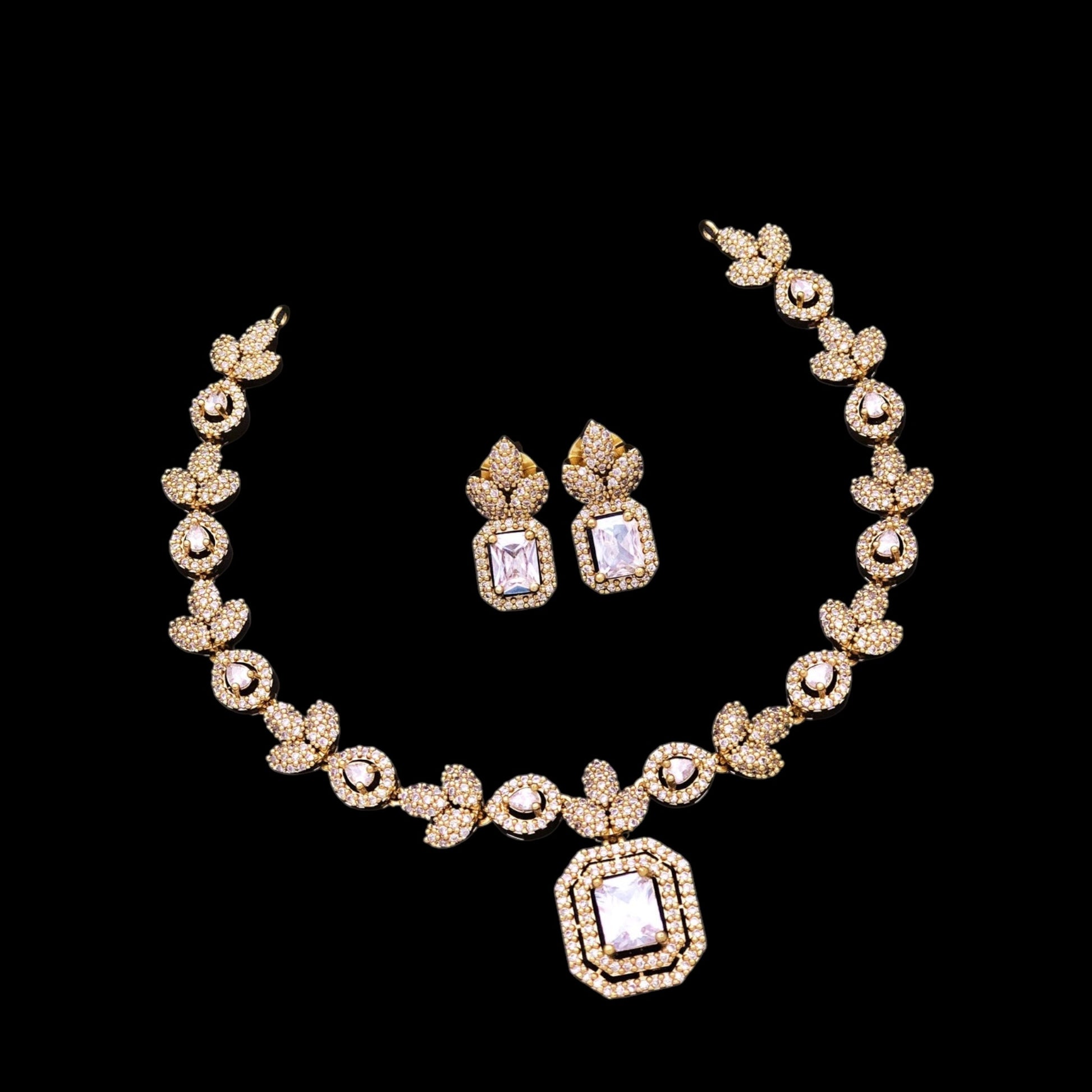 Simple gold plated American Diamond necklace set with earrings.